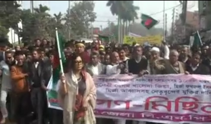 আজ শনিবার গণমিছিল ও সমাবেশ উপলক্ষ্যে সকাল থেকে দলীয় নেতা কর্মীরা শহরের আলাইপুরস্থ জেলা বিএনপির কার্যালয়ের সামনে সমবেত হতে থাকে। পরে বেলা সাড়ে ১০ টার দিকে দলীয় কার্যালয়ের সামনে থেকে বিএনপির কেন্দ্রীয় সাংগঠনিক সম্পাদক রুহুল কুদ্দুস তালুকদার দুলুর নেতৃত্বে গণমিছিল বের করে।