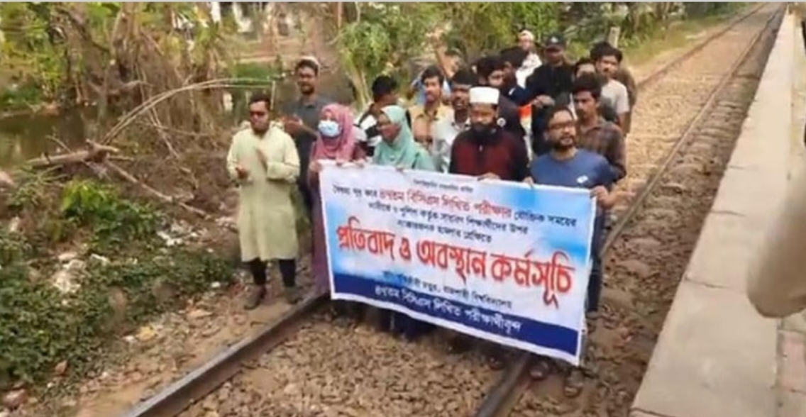 রাজশাহীতে আবারো রেললাইন অবরোধ করে বিক্ষোভ