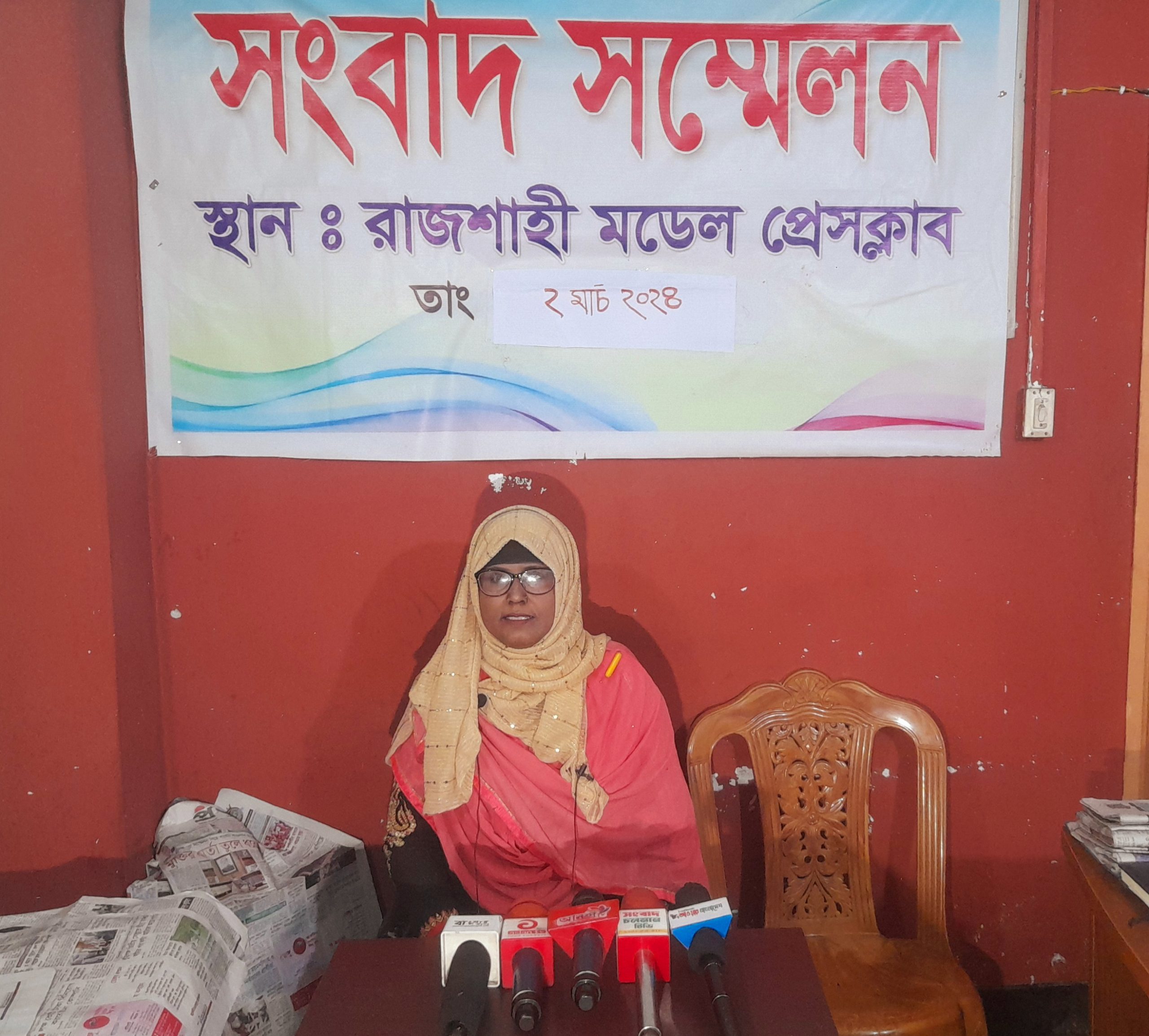 রাজশাহীতে অত্যাচারিদের নিকট থেকে রক্ষা পেতে কলেজ শিক্ষিকার সংবাদ সম্মেলন