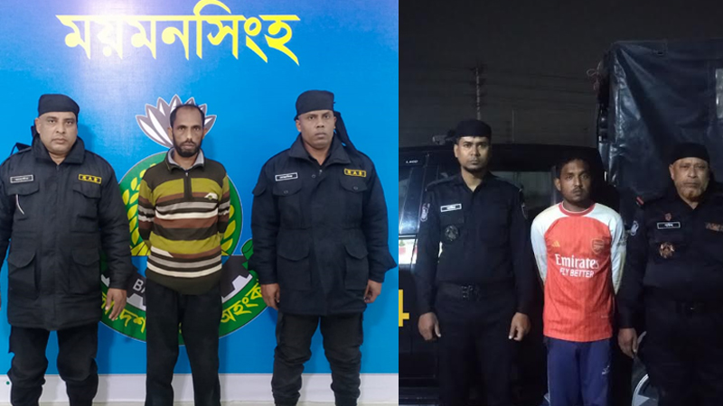 আজ রোববার বিকেলে ময়মনসিংহ র‌্যাব-১৪ সদর দফতর থেকে পাঠানো এক সংবাদ বিজ্ঞপ্তিতে এ তথ্য জানানো হয়েছে। এর আগে এদিন ভোরে সদরের আকুয়া চুকাইতলা ও ঢাকার কামরাঙ্গীরচর এলাকা থেকে তাদের গ্রেফতার করা হয়।
